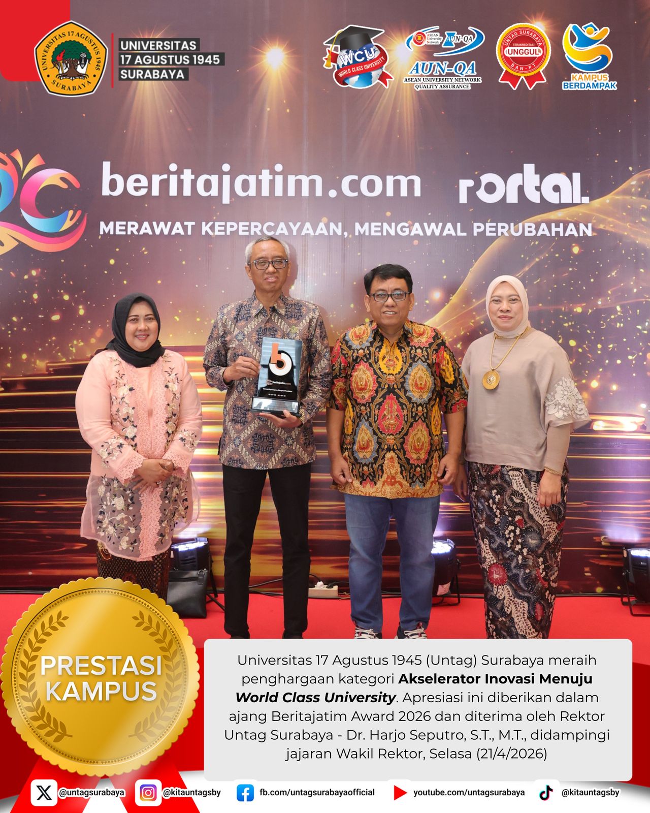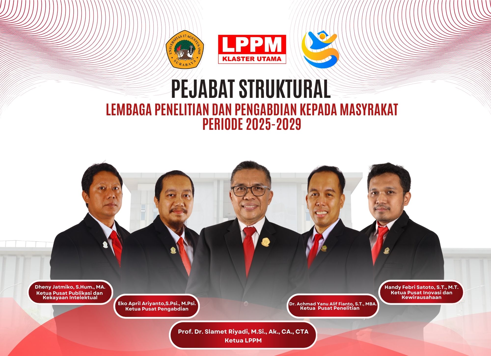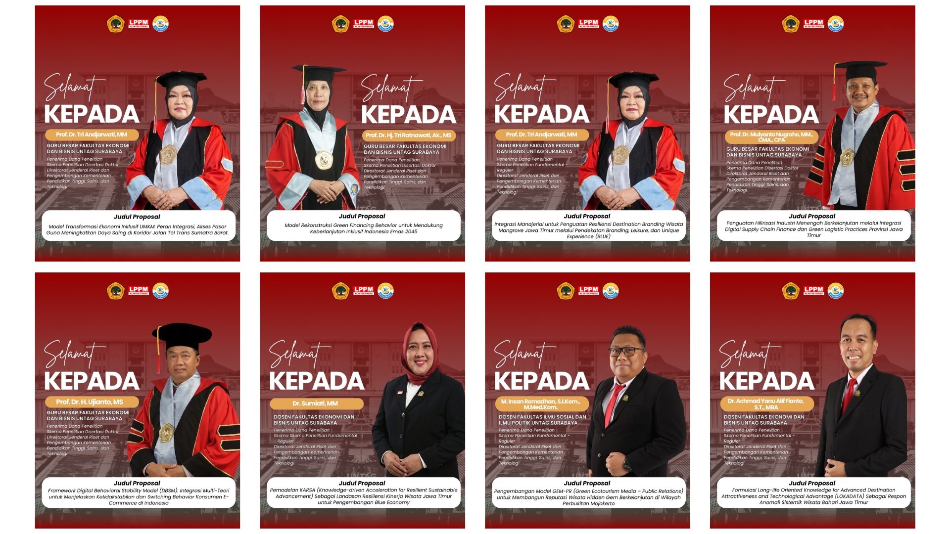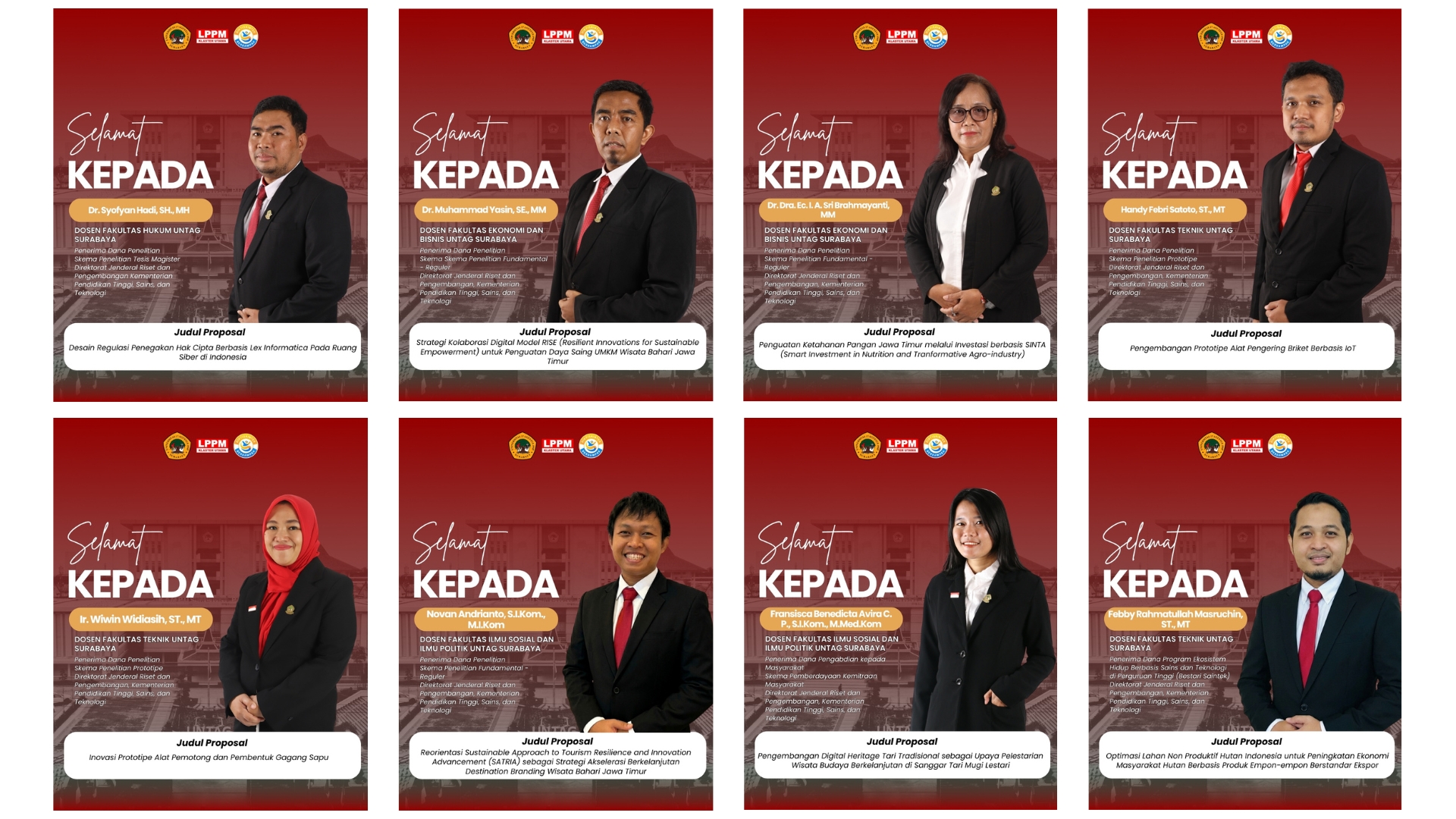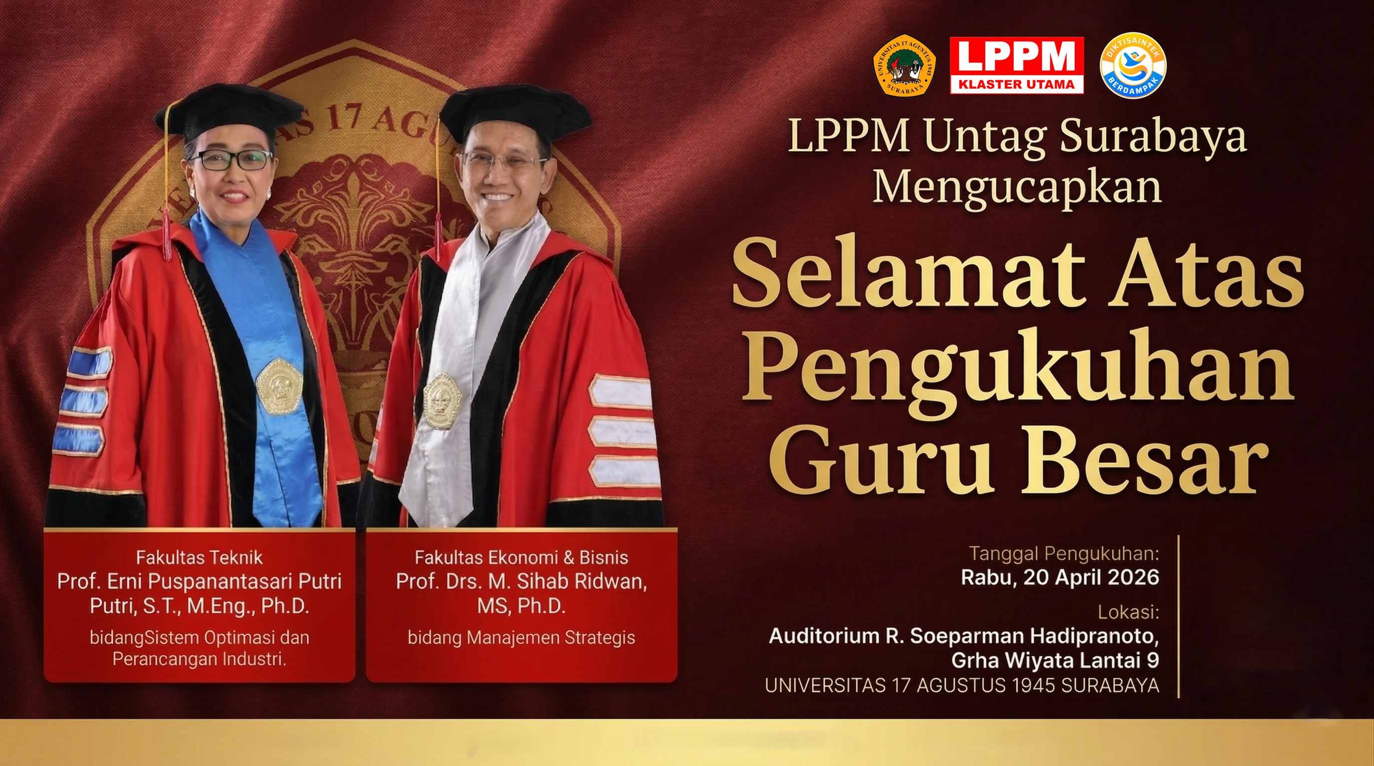 Melalui semangat merdeka berinovasi, LPPM UNTAG Surabaya terus berupaya menghasilkan karya-karya penelitian unggulan dan program pengabdian yang berdampak luas, sebagai kontribusi nyata dalam mendukung pembangunan nasional berbasis Tri Dharma Perguruan Tinggi. Mari bersama kami, membangun masa depan yang lebih baik melalui penelitian, inovasi, dan pengabdian kepada masyarakat!